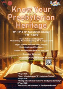 The Presbyterian Church in Singapore is a part of the Christian Church throughout the world. The purpose of the church is to unite the Presbyterian churches in Singapore in a self-governing, self-supporting and self-witnessing spirit for the preaching of the Christian doctrine, the practice of the Christian life and the extension of God’s Kingdom on earth.